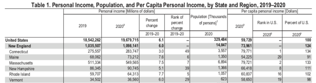 This left Connecticut’s per capita income at $79,771 and Massachusetts at $79.721, according to the BEA.