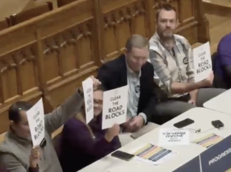 The meeting wrapped up with everyone on the panel, including Rep. Elliott and the audience, but not Speaker Ritter, enthusiastically holding up signs reading “Clear the Road Blocks”. Speaker Ritter’s reluctance to join in could be a hopeful sign that he’s not fully on board with dismantling the fiscal guardrails to grant unions their wish for billions in extra spending.