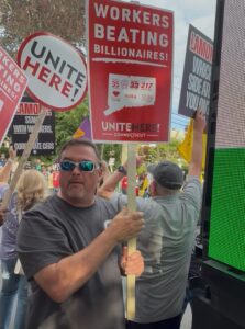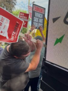 And the moment someone showed up with a different message, the union response wasn’t debate but political intimidation and violence. Yet this is what union power looks like: chant, break things, and demand a check.